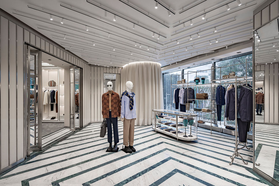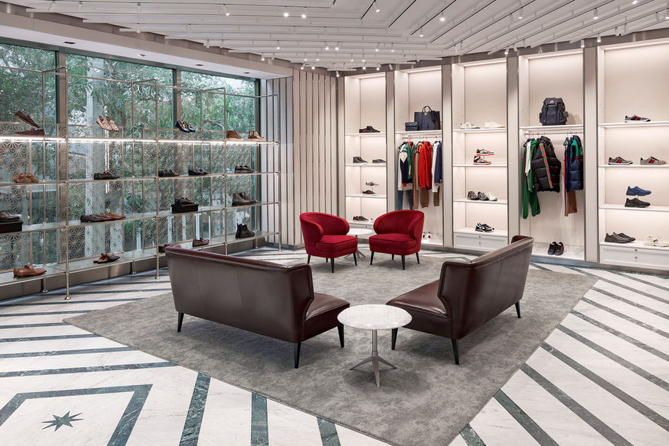 The boutique carries an expanded offering of men’s products including shoes, ready-to-wear, luggage, small leather goods, and eyewear. Customers will discover the House’s signature travel offering, Gucci Valigeria, as well as lines presented alongside the Cruise collection.