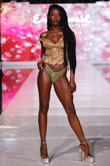 Miami Swim Week® The Shows kicked off in electrifying fashion as Ema Savahl Couture set the runway ablaze with a stunning survival-themed showcase. The atmosphere was charged with anticipation as the audience witnessed a daring display of fashion ingenuity. Ema Savahl's collection was a masterclass in edgy elegance, featuring torn, twisted, and roused fabrics that